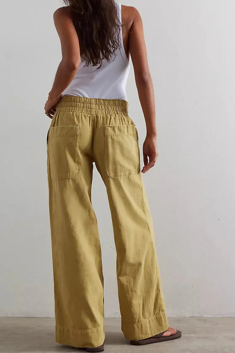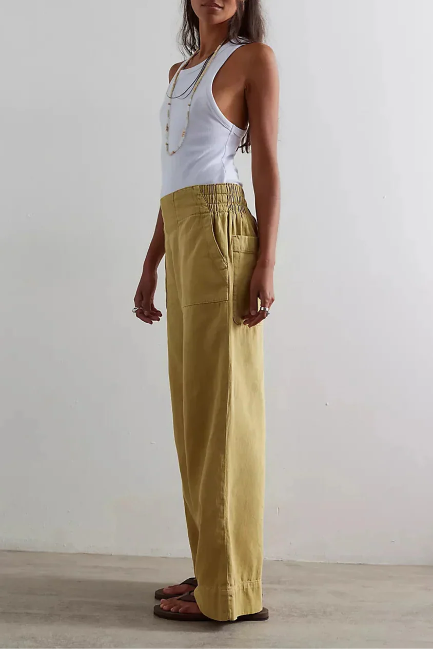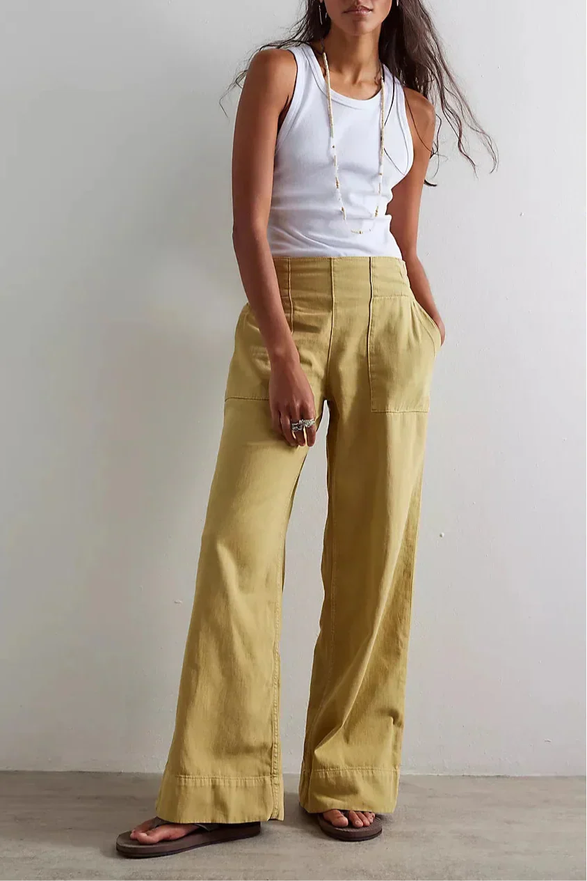 Designed to sit comfortably at the waist, the high-rise fit offers a clean, flattering line that works well with both fitted and relaxed tops.